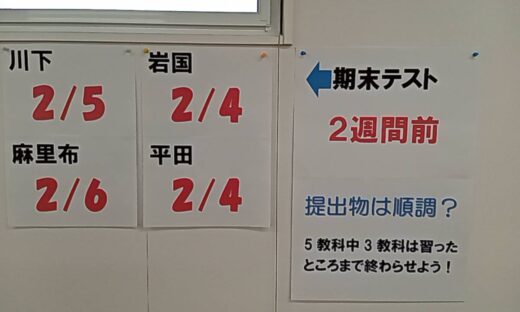 各学校2月は学年末テストを控えています。このテスト勉強を受験勉強のスタート!というくらいの意識で取り組んでほしいと思います。